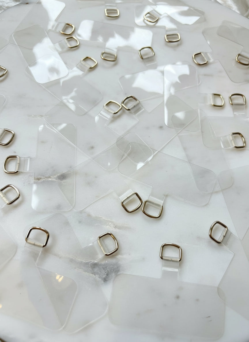 A great alternative for those who want to use their own case or to try out the practicality of a wristlet. A slim, transparent plastic tab designed to disappear inside your case, it securely holds your wristlet or crossbody without scratching your phone. Place it in your case and pull the hook through the charging port to attach SO VIE accessory.